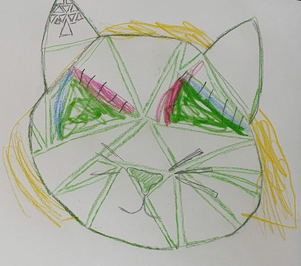 My third and final item is a cat made out of triangles, for the similarity principle. As I mentioned before this initially started out as a proximity sketch and idea, but when I started drawing it up more detailed, it appeared to me that my idea actually was a similarity idea, not proximity, so I changed it.