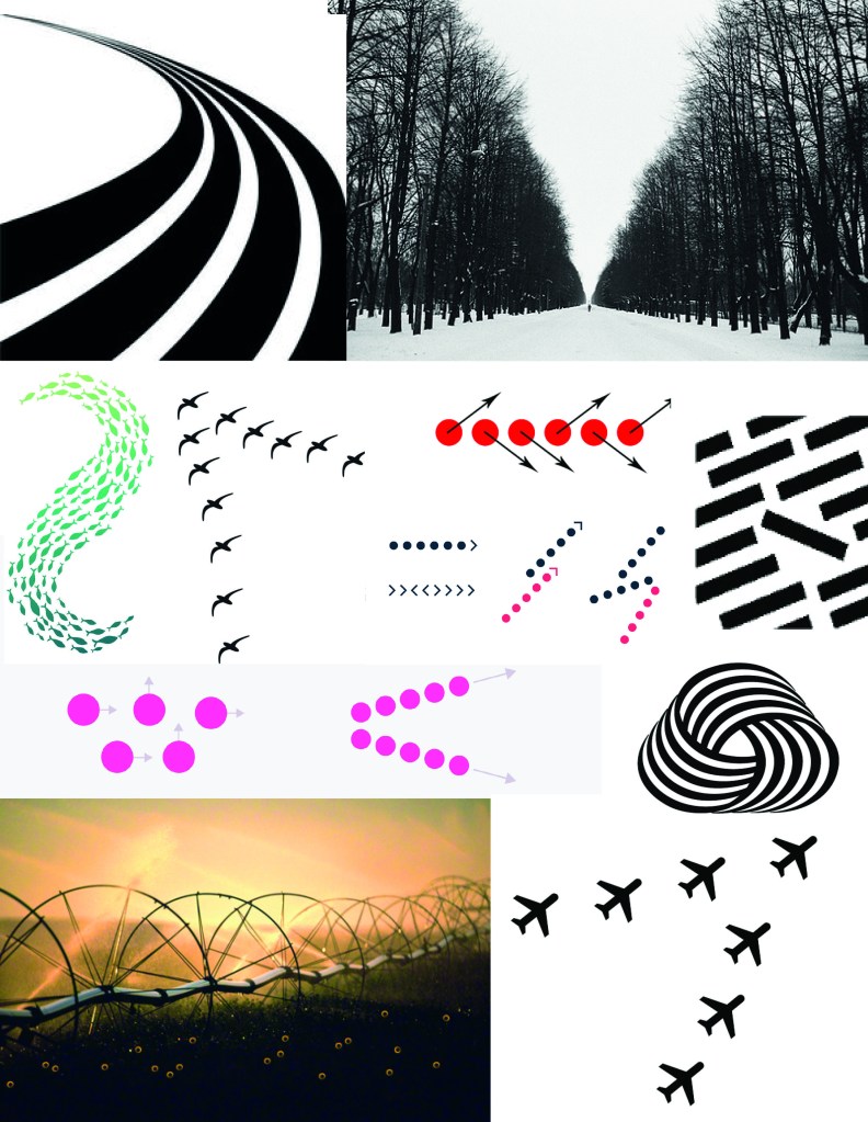 Common fate: We tend to see objects moving in the same directions as a group.