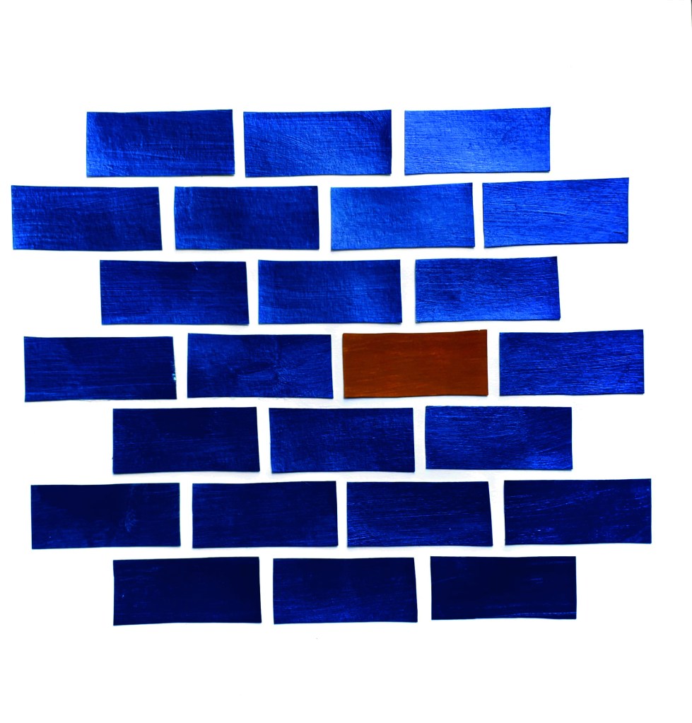 My first item is made after the design principle common fate, I tried to keep my work simple without repeating or copying the photos I found during my online search. I thought about doing a piece like my self portrait, that I did for my learning assignment about my journey here, but this is a technique I want to explore and take further with programs like Photoshop and Illustrator, so it will have to wait for another time. Then I thought about Bricks in a wall, they usually all go the same way, and therefore is viewed as a whole unit, even without slabs of concrete in between them.