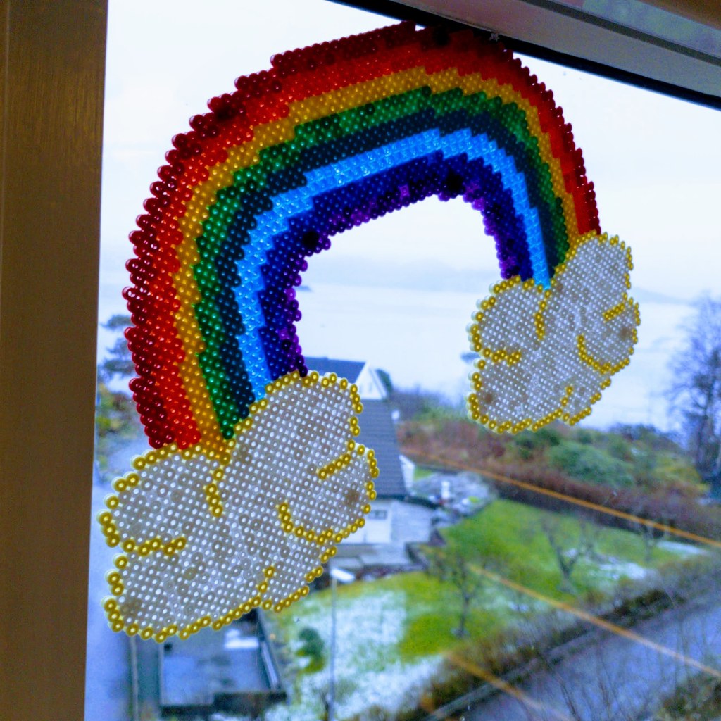 My second item for the Symmetry principle, is a huge green leaf. I was thinking about different ideas, one of them being a rainbow, which can be quite symmetric. During the last couple of weeks, with the Covid-19 situation, the rainbows are everywhere. So I have already made a rainbow with Hama beads, and then I wanted to do something different.