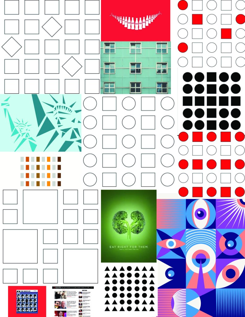Similarity: We seek out the variables and similarities in a image or shape, and link the similar items together.