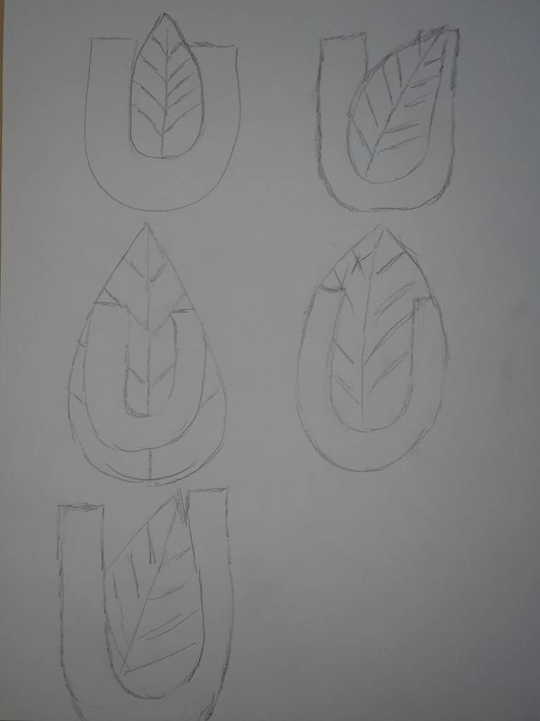 I placed my leaf in the middle , turned diagonally across the paper, to avoid it from being to symmetrical. So this is my symmetrical yet unsymmetrical green leaf.
