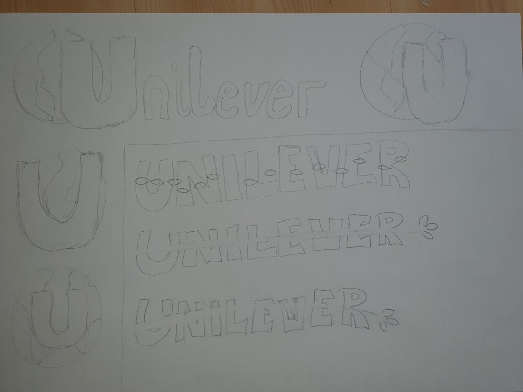 Inspired by Unilever’s work against deforestation, I made a sprout go through the logo name. The three green leaves on the end, represent one of Unilever’s key priorities: Reducing, reusing and recycling. For this logo I chose a color of clear green, suitable with the leaves and forest theme.