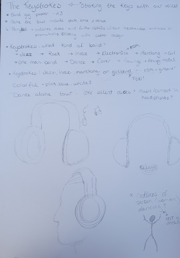 The third and last learning assignment this week was to design a poster in A3 format, for a band’s gig. The band is called The Keystrokes. We were to choose the name of their tour, dates, time and venue.