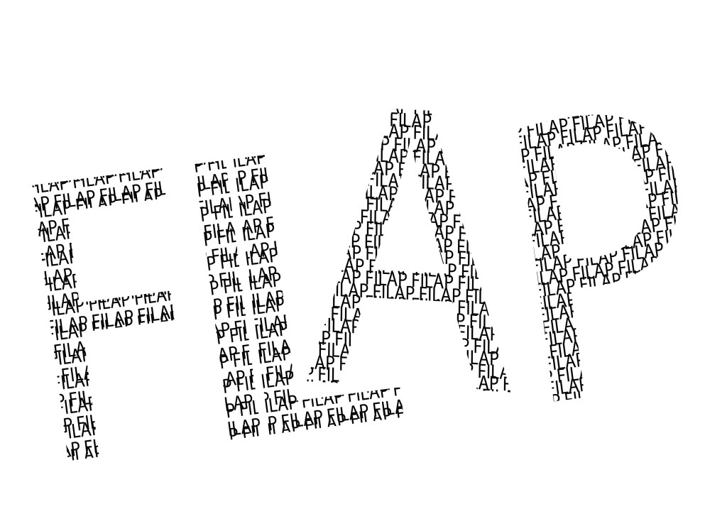 For the Filap illustration, I wanted to make a clean mess, if that makes sense. I made the letters with two sets of the word written all over, and tilted one of them, to create some messiness. I have arranged my letters with uneven spaces between them, and tilted some of them in different directions.