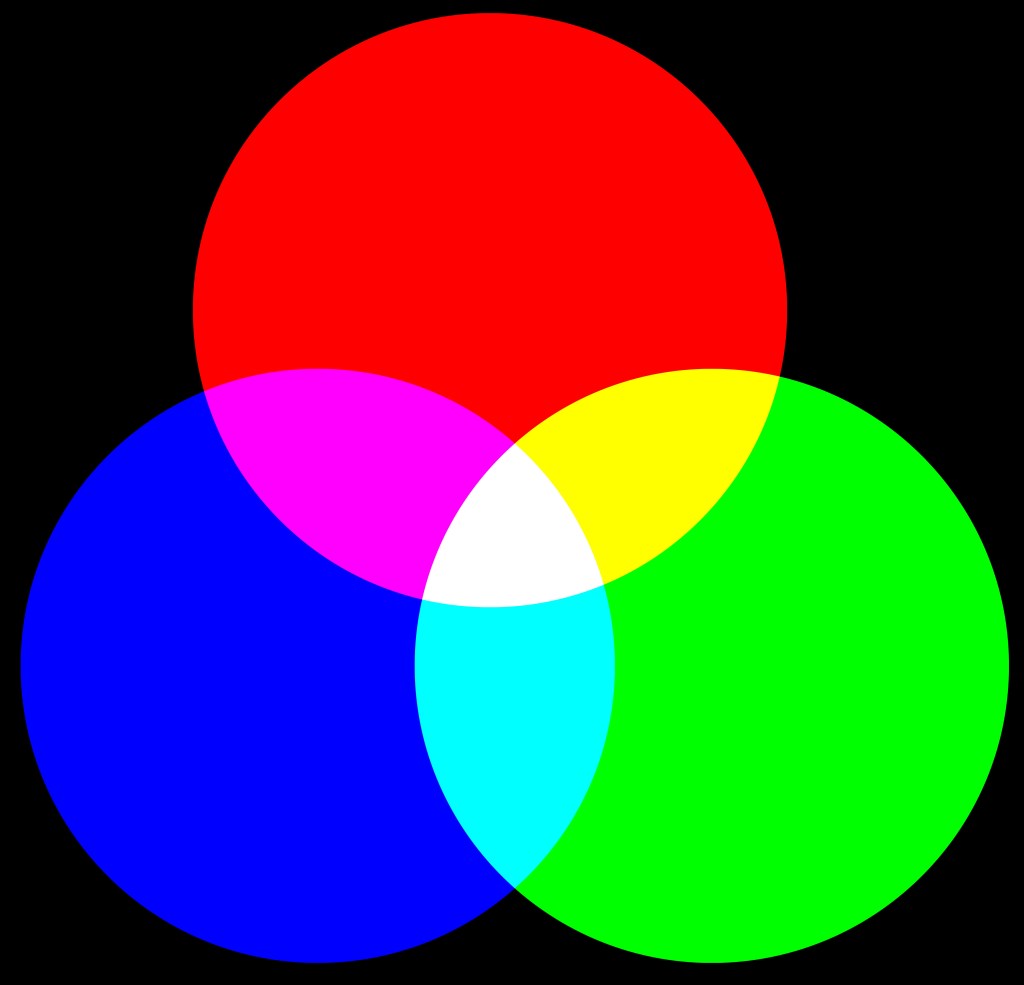 In the RGB color system, we have red, green and blue as the primary color. In the RGB system we find millions of colors. The RGB color system is for digital images, has a range of brightness which we measure in levels from 0 – 255, and is also known as the additive system. By this we mean as we keep adding or mixing color, we add light. And as a result of this, if we mix enough, we start with black(no light and 0 brightness) and will end up with white(light and 255 brightness.)